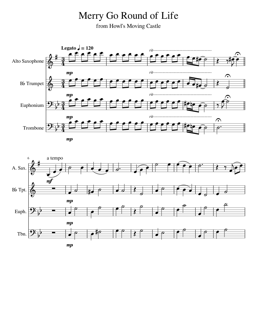 43+ Howl's Moving Castle Alto Sax Sheet Music Pics. Elton john hakuna matata sheet music notes and chords arranged for easy piano. Merry go round of life is the theme music of howl's moving castle ost.